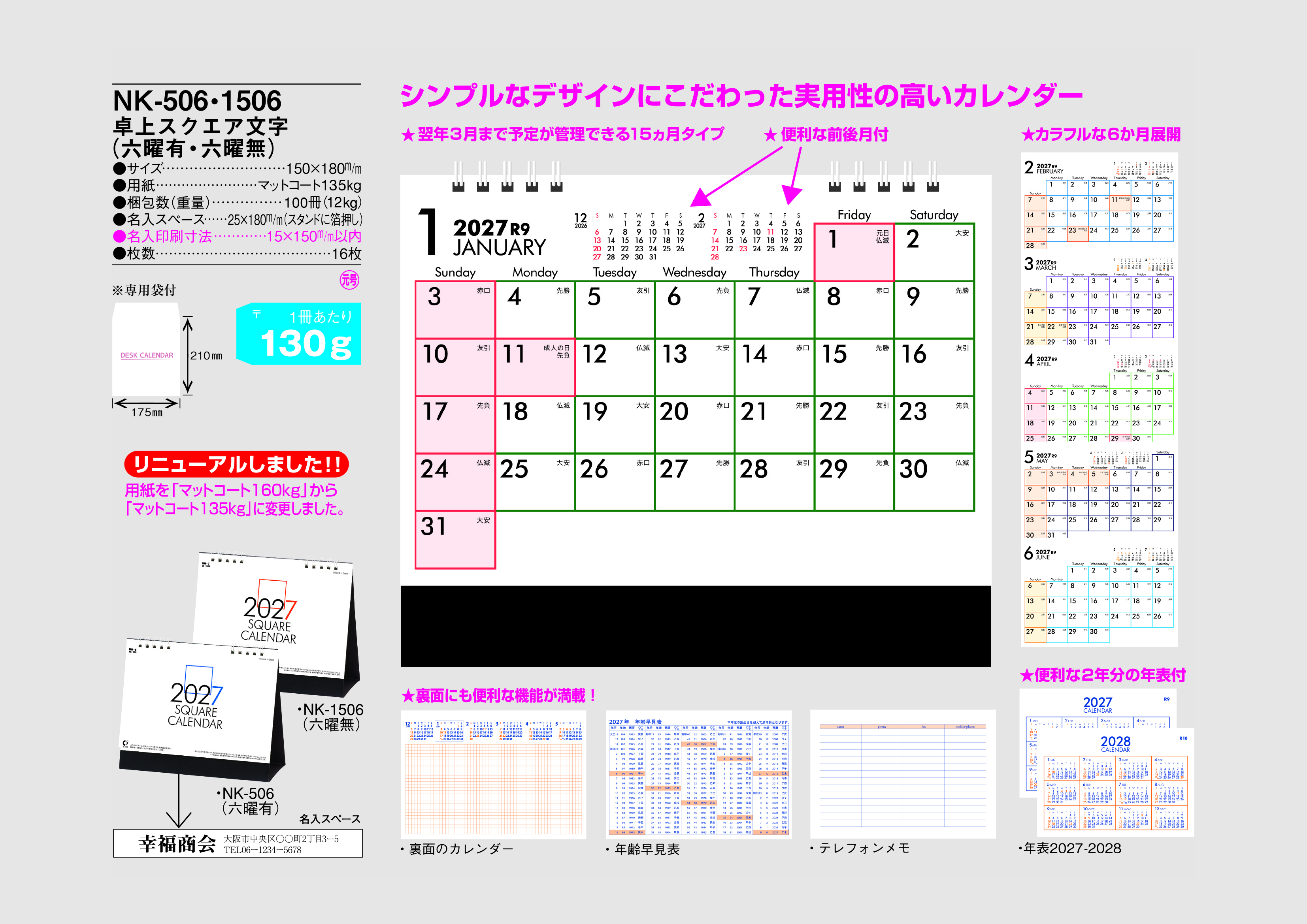シンプルなデザインにこだわった実用性の高いカレンダー