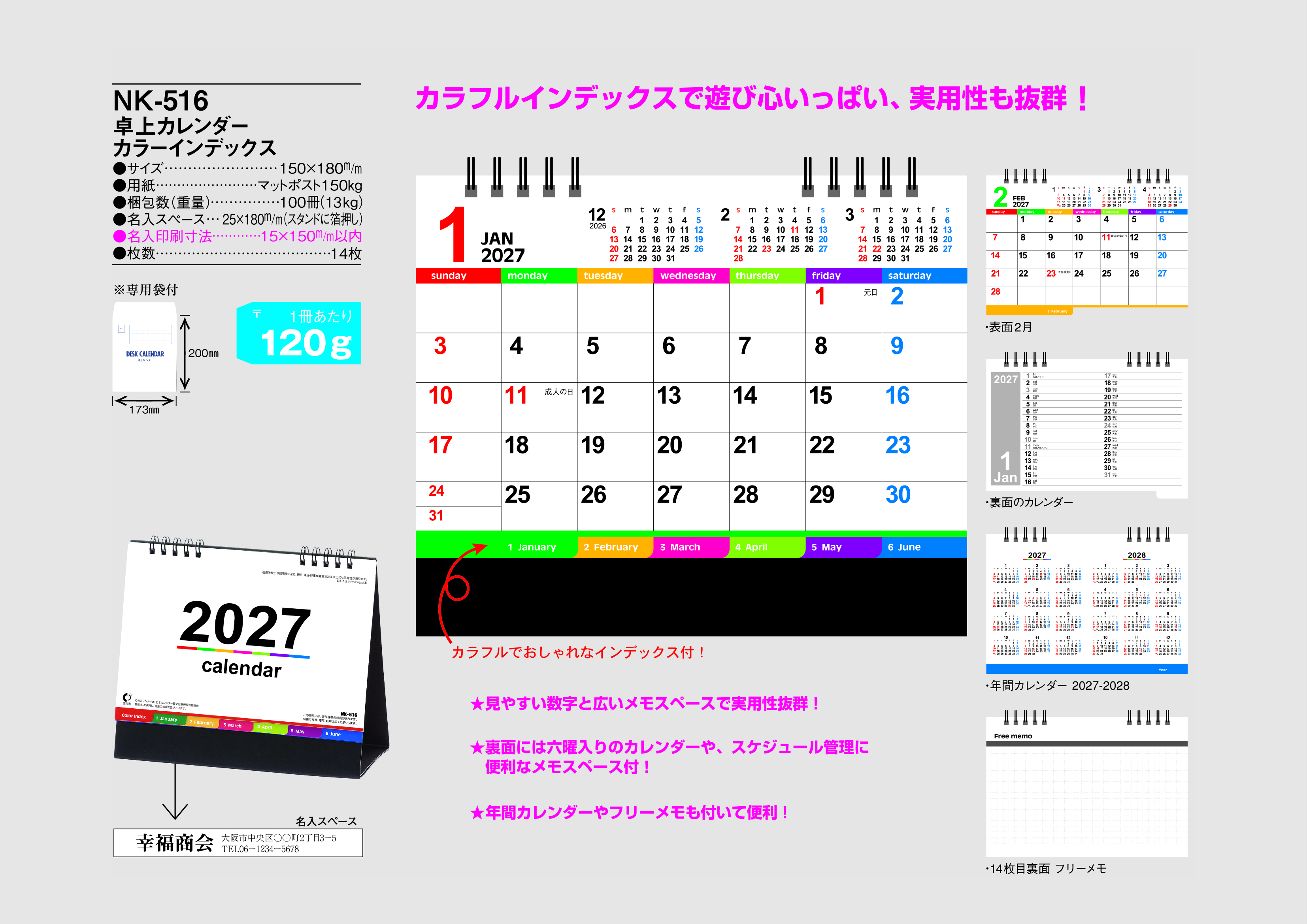 卓上カレンダー カラーインデックス