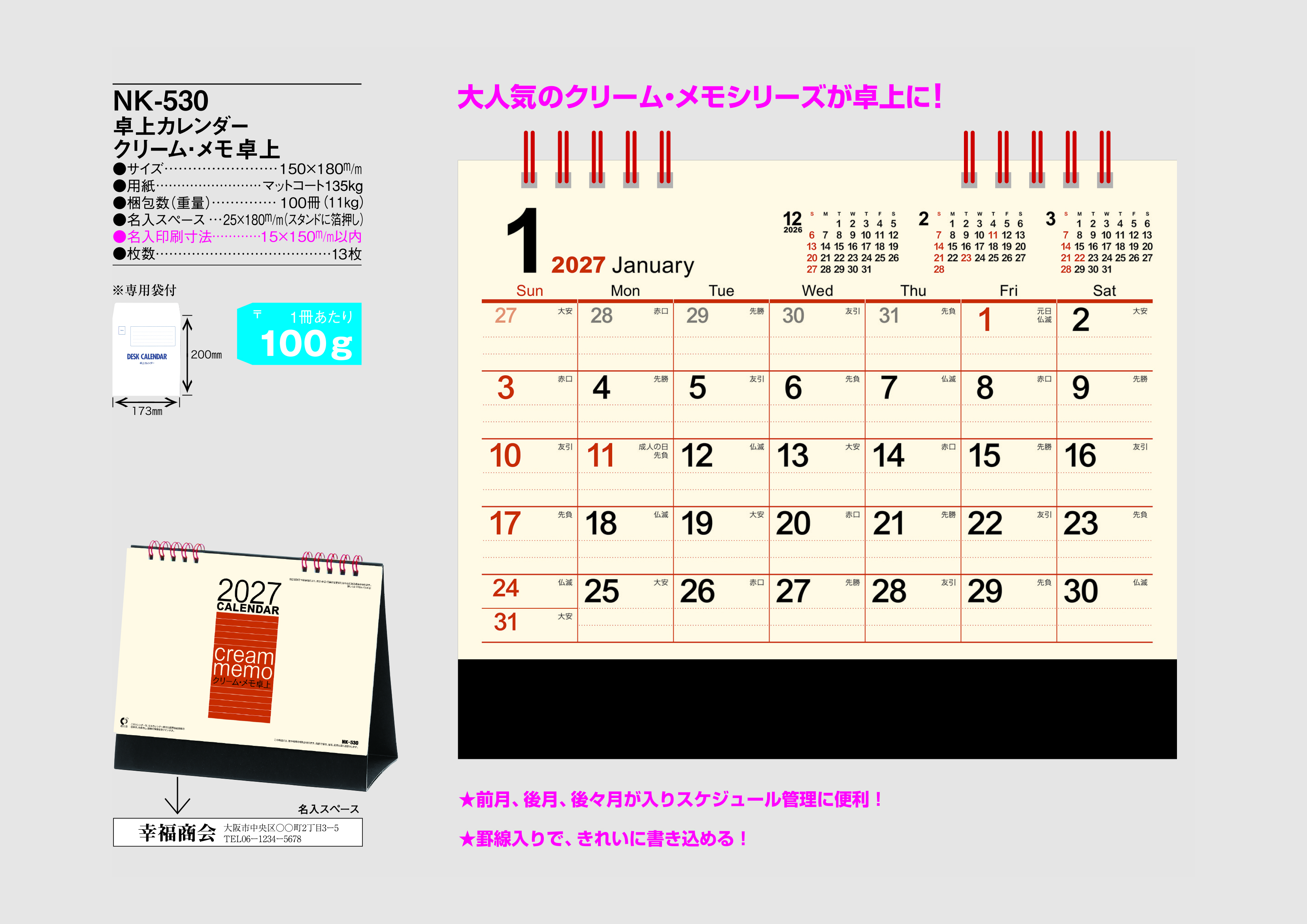 大人気のクリーム・メモシリーズが卓上に!