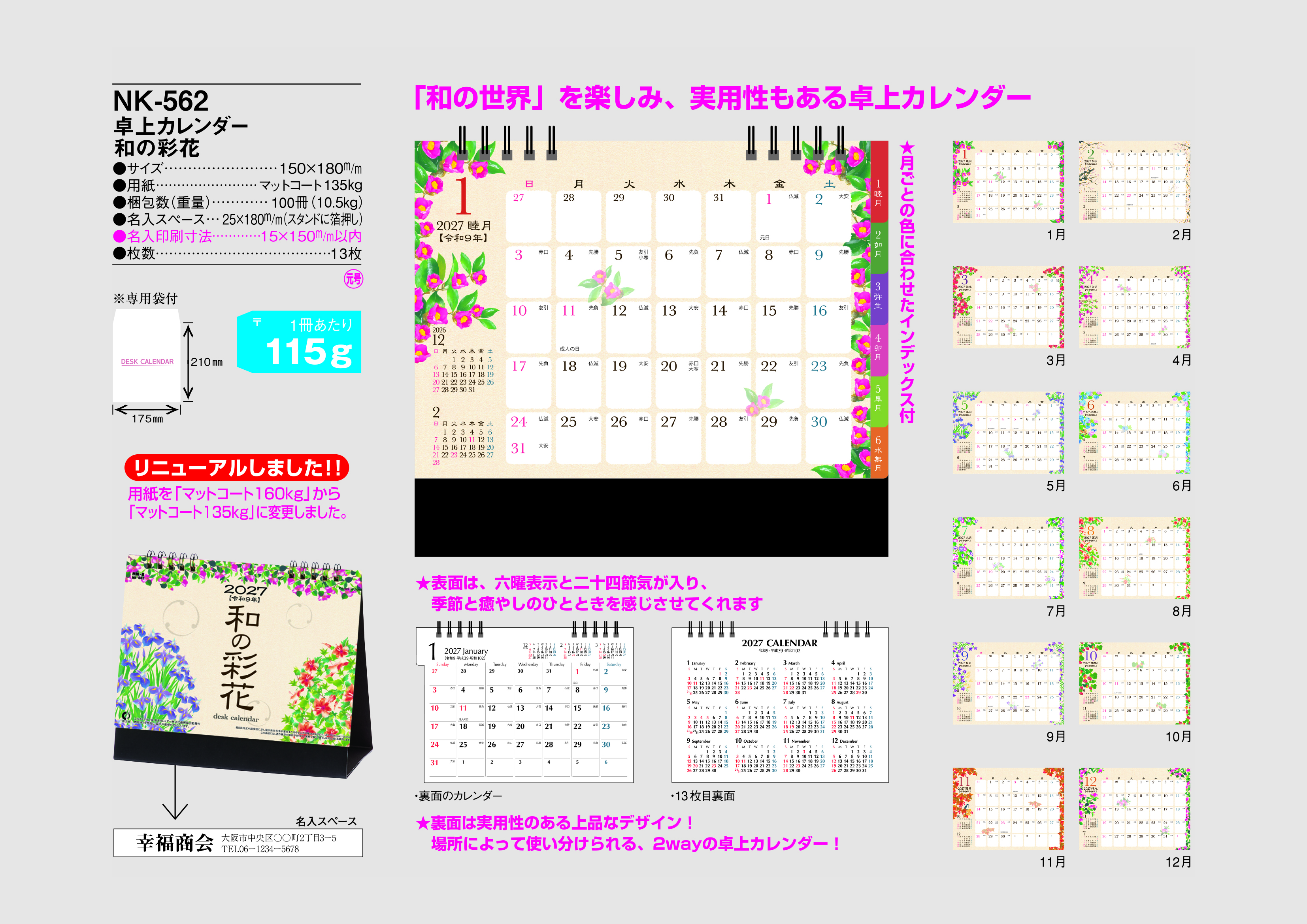 卓上カレンダー 和の彩花