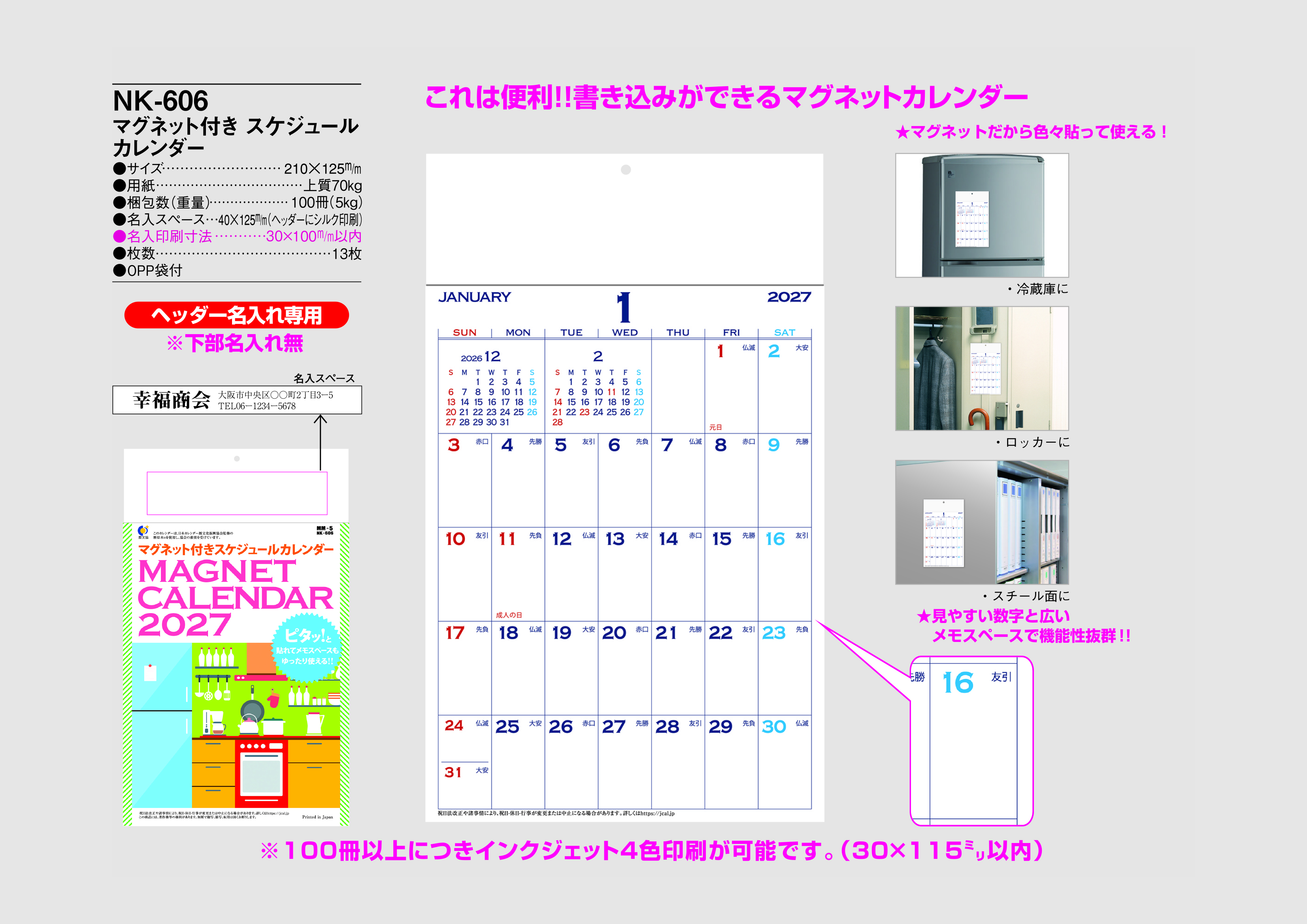 ※100冊以上につきインクジェット4色印刷が可能です。(30×115㎜以内)