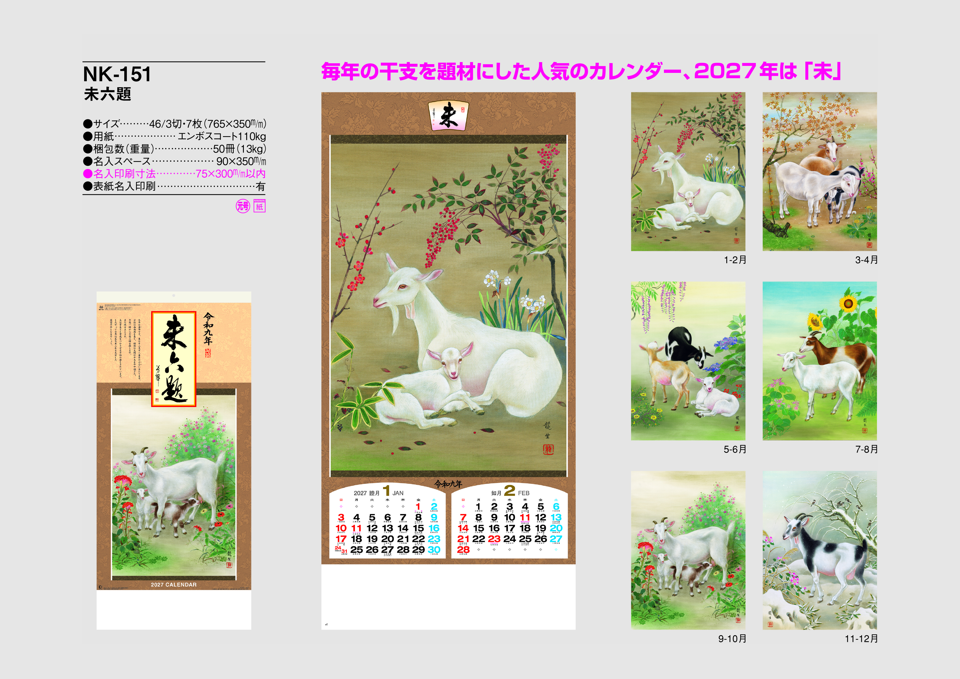 毎年の干支を題材にした人気のカレンダー 2027年は「未」