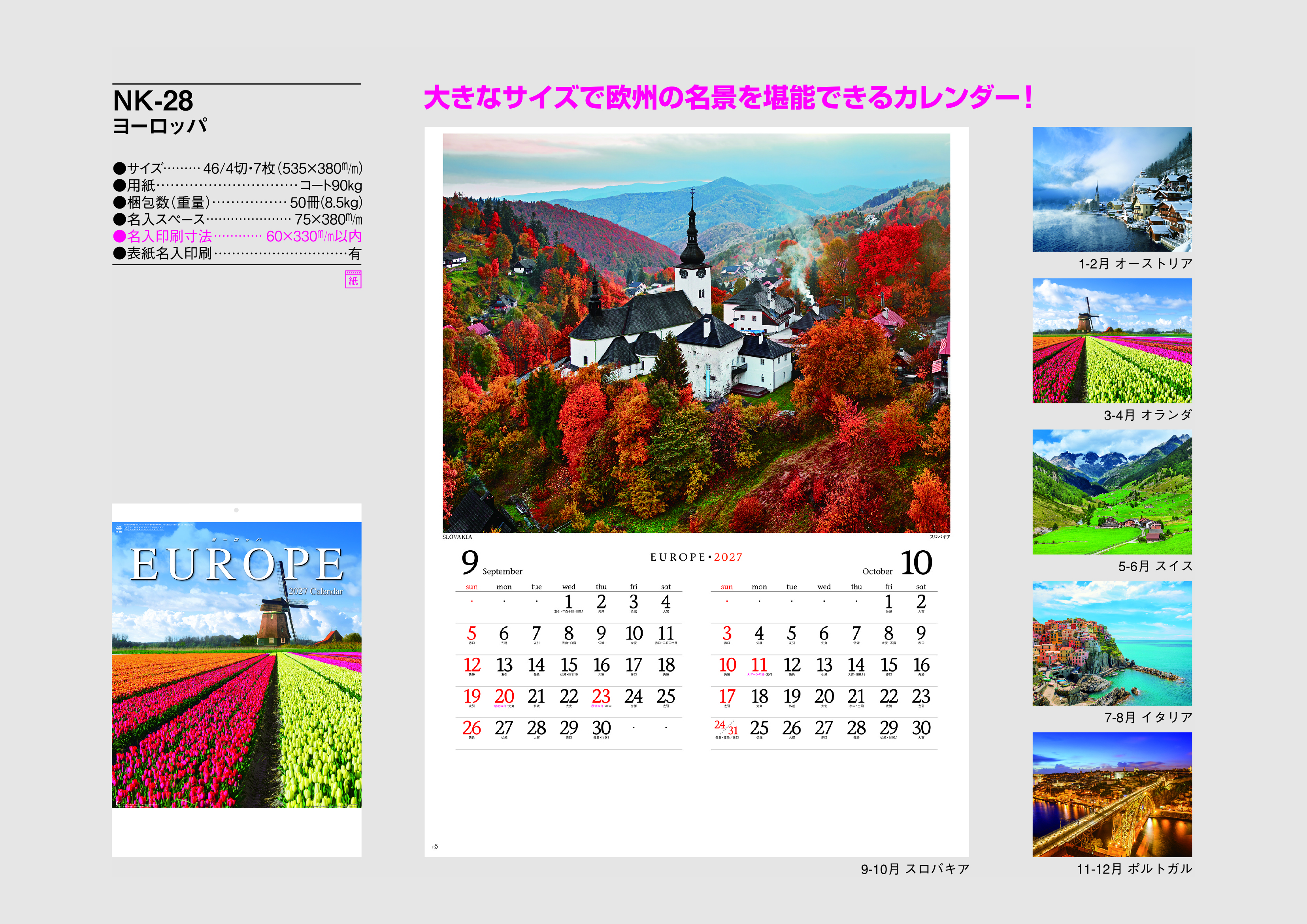 大きなサイズで欧州の名景を堪能できるカレンダー!