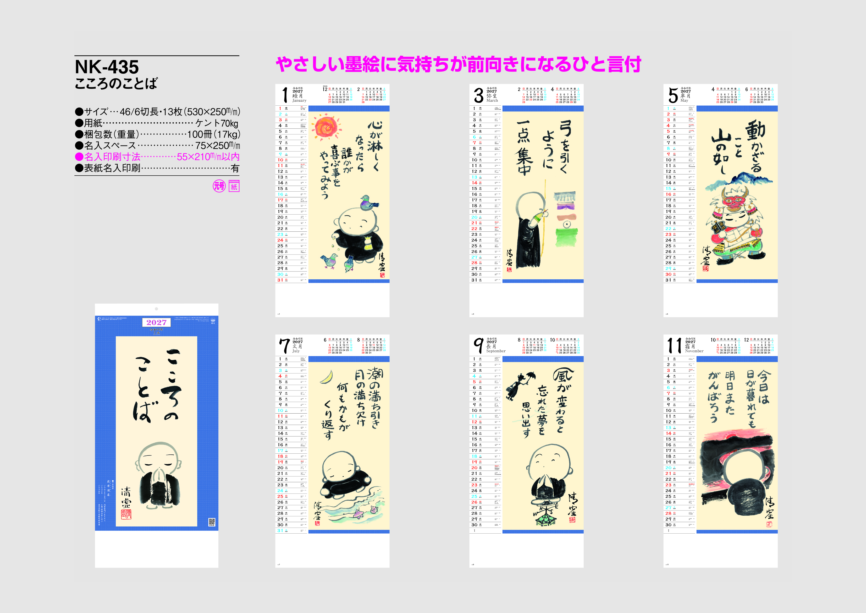 やさしい墨絵に気持ちが前向きになるひと言付