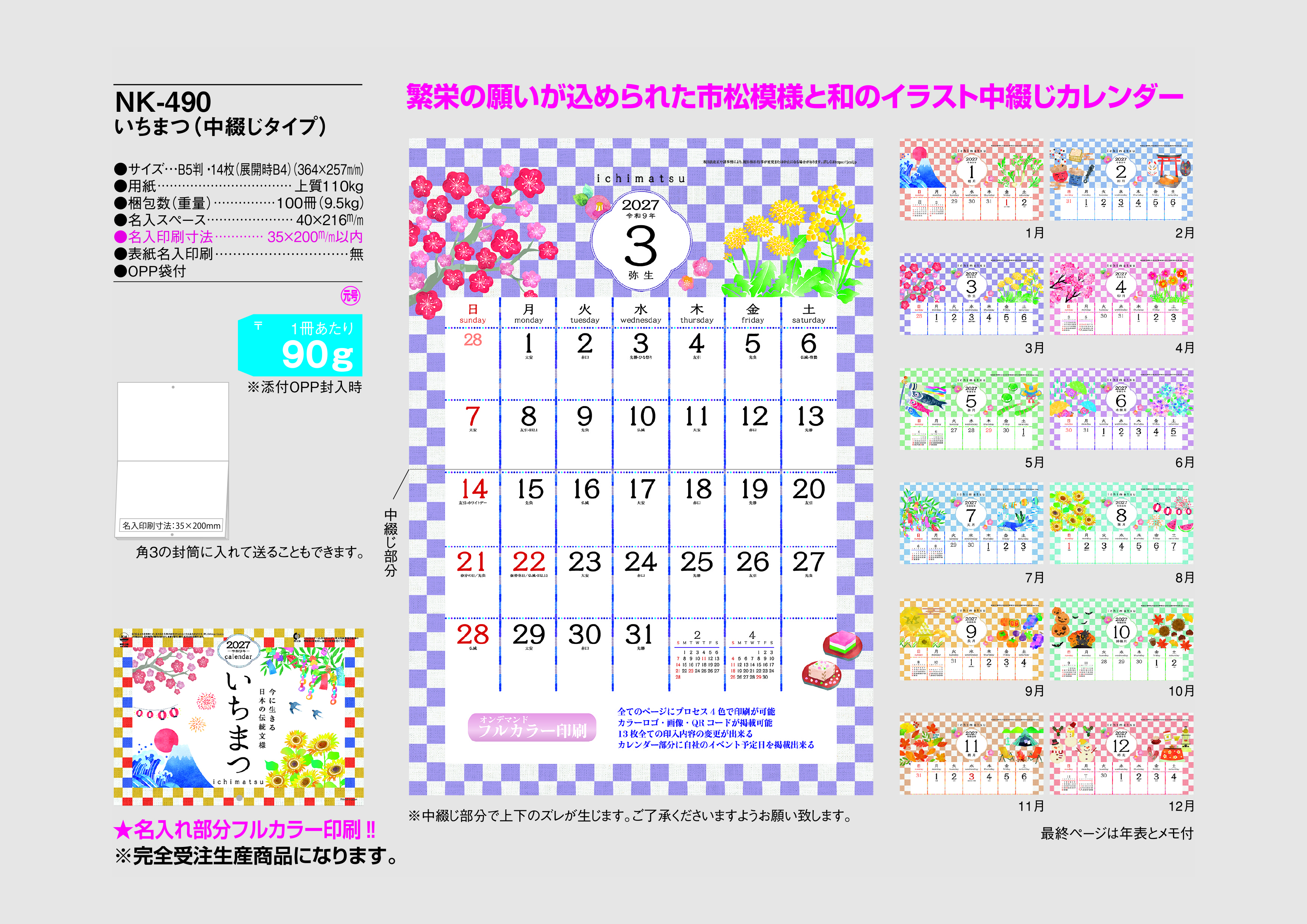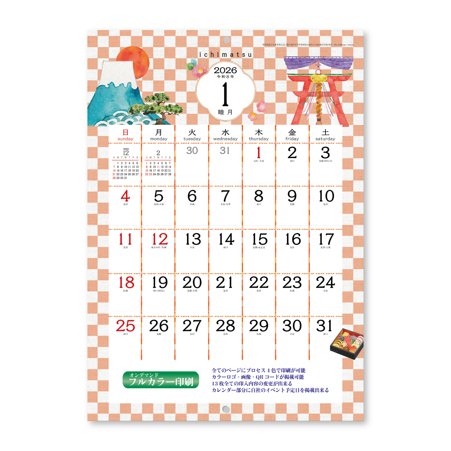 市松模様と四季を感じさせる和のイラスト中綴じカレンダー
