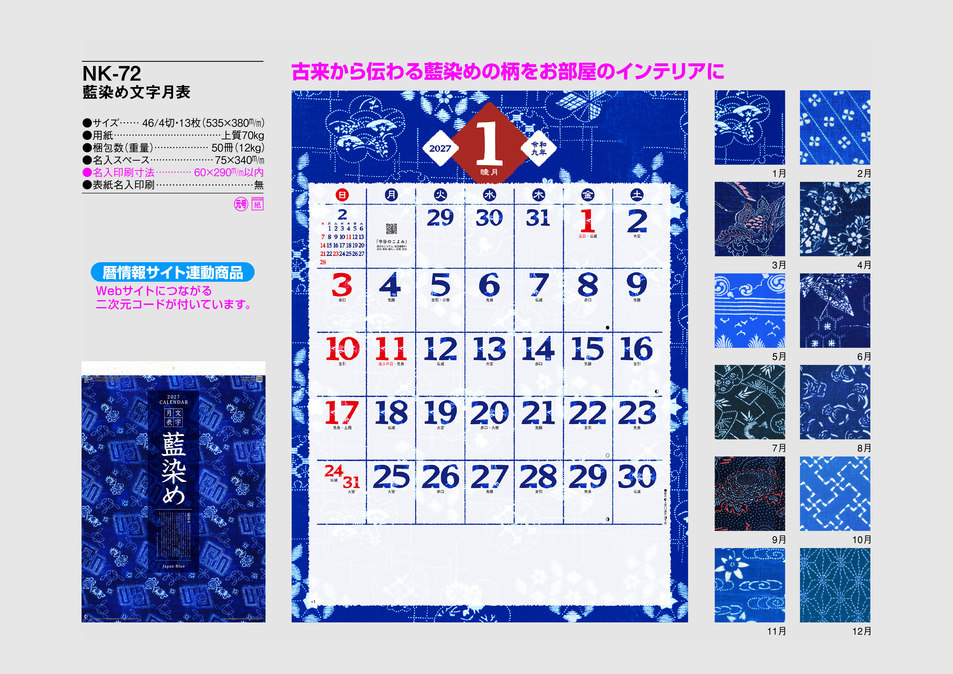 藍染め文字月表