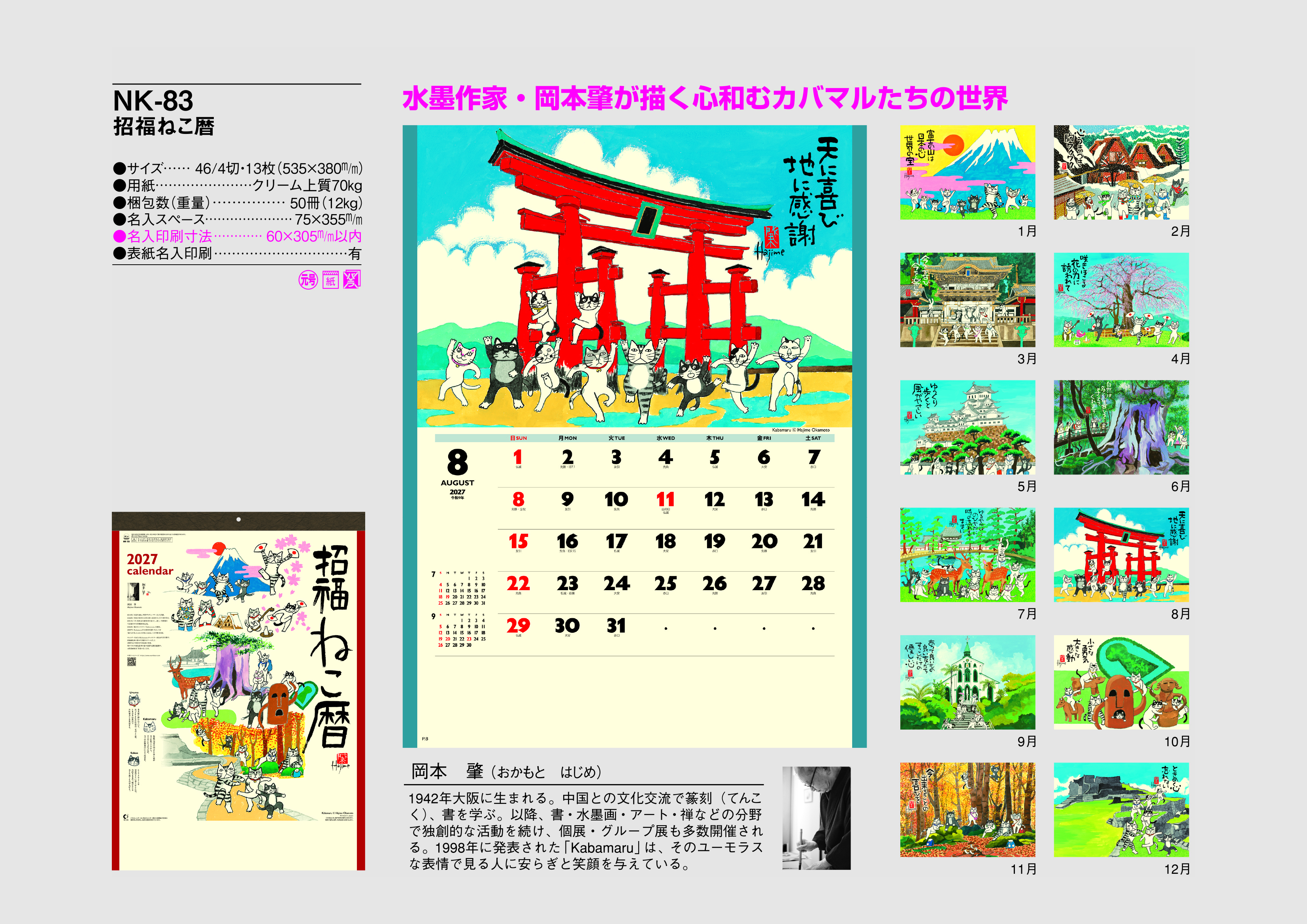 水墨作家・岡本肇が描く心和むカバマルたちの世界