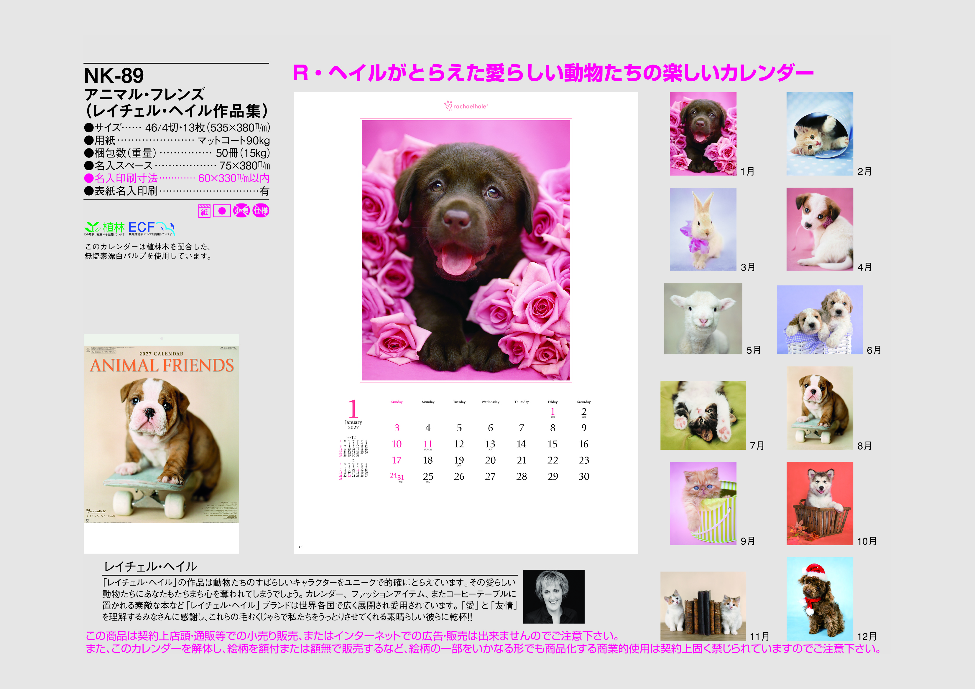 ※また、このカレンダーを解体し、絵柄を額付または額無で販売するなど、絵柄の一部をいかなる形でも商品化する商業的使用は契約上固く禁じられていますので御注意下さい。